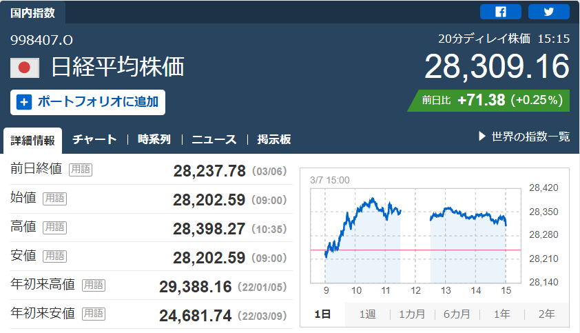 今日の日経平均 ’23 03/07
